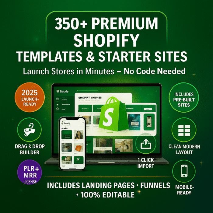 Launch your online store or digital product business faster than ever with this massive Shopify bundle. Whether you’re building for yourself or clients, the 350+ Premium Shopify Pack gives you plug-and-play design power with full resell rights.