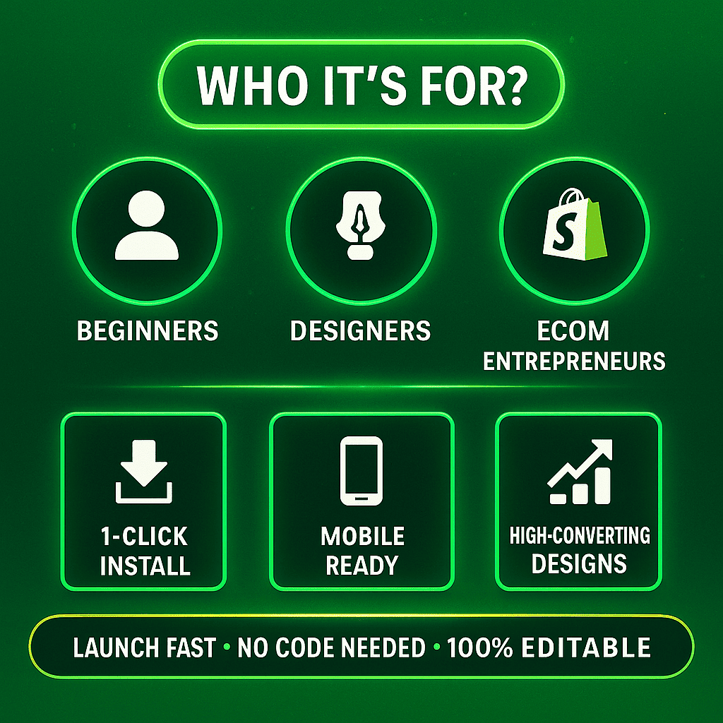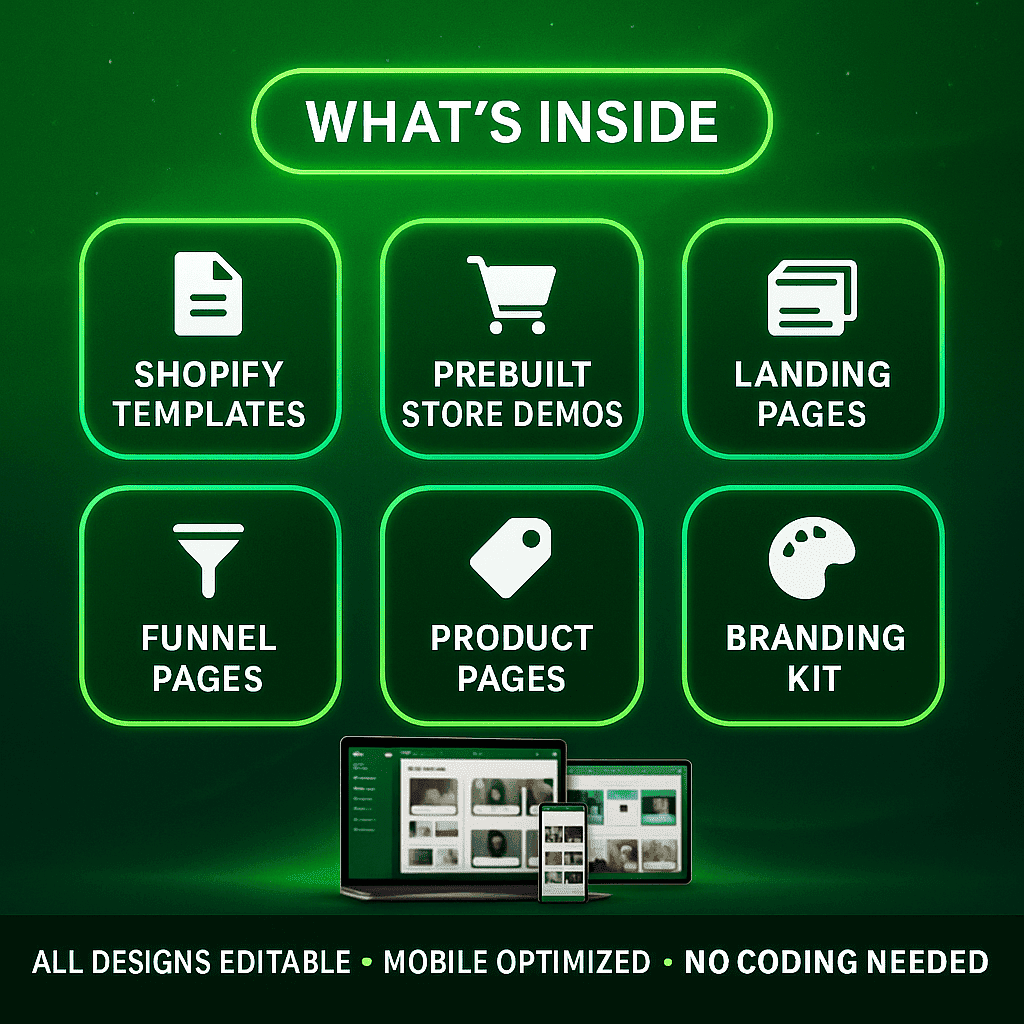 Most people get stuck building Shopify sites from scratch. This bundle breaks that barrier by giving you done-for-you store templates, product pages, and site kits β all customizable and ready to launch or resell.